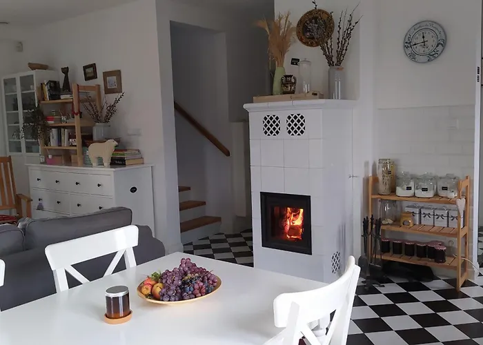 Das Apartment Domek Na Wsi - Sauna I Jacuzzi besteht aus einer Terrasse, einer Sitzecke und einer Küche, möbliert mit einem Kamin. In diesen Apartments werden Gäste den Komfort von Handtüchern im Badezimmer genießen.